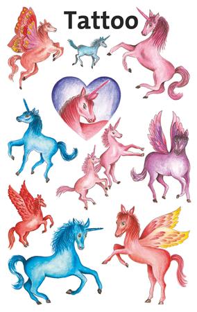 Unikornis tetoválás tündér hercegnőknek! Tökéletes ajándék, vagy apró meglepetés, amivel hazaérkezik, születésnapi partikra vagy egyszerűen arra, hogy a gyerekek játszanak.