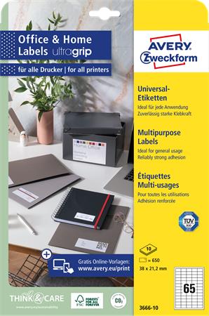 www.bestlabel.huEtikett, univerzális, 38x21,2 mm, AVERY ZWECKFORM, 650 etikett/csomag magas minőségű irodaszer, amely segít a dokumentumok rendezett, áttekinthető tárolásában. Kiváló választás irodákba, iskolákba és otthoni használatra is. Kedvező ár, megbízható minőség és gyors szállítás webáruházunkból.