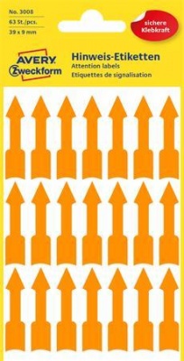 www.bestlabel.huJelölőnyíl, 39x9 mm, AVERY ZWECKFORM, neon narancs, 63 etikett/csomag magas minőségű irodaszer, amely segít a dokumentumok rendezett, áttekinthető tárolásában. Kiváló választás irodákba, iskolákba és otthoni használatra is. Kedvező ár, megbízható minőség és gyors szállítás webáruházunkból.